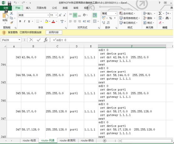 参照附件路由表导入工具(操作方式详见附件),导入联通明细路由