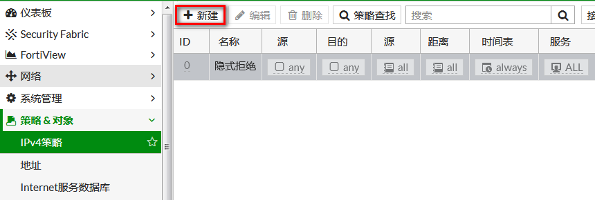 菜单: 策略&对象--IPv4策略, 点击 "新建"
