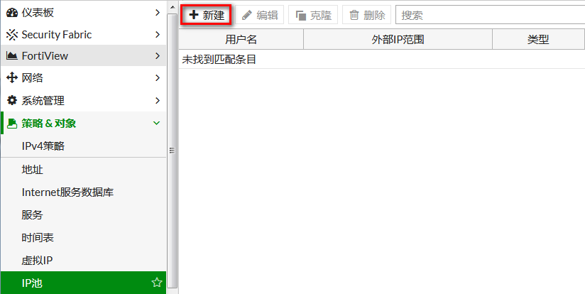 进入菜单:策略&对象--IP池,点击 "新建"按钮