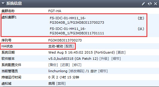 说明: HA建立完成后,只能通过主机进行访问、管理主机。如果需要登陆备机管理,请参考"HA集群带外管理"配置章节。