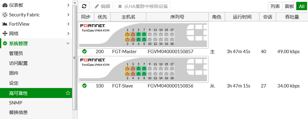 进入菜单" 系统管理--高可用性",就可以看到HA的建立情况。
