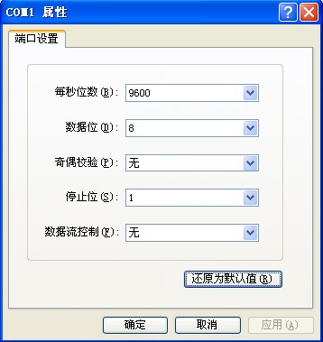 在"COM属性"中将每秒位数选为9600,同时点击"还原为默认值",点确认。即可进入设备命令行。