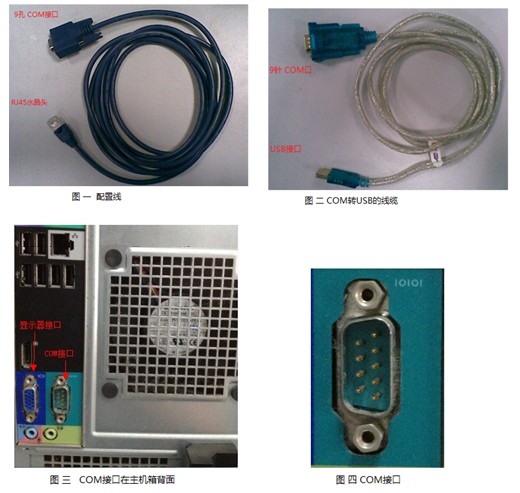 配置线:一头类似网线水晶头(接在FortiGate的console口上),另一头上面有9个孔(接电脑的COM口),线的颜色可能不一样,但接口是一样的,如下图一所示,如果是没有COM口的笔记本时,请自行买COM转USB的线,然后接在笔记本上的usb口,如下图二。需要带COM口电脑:电脑上的COM口在机箱后面,接显示器接口的旁边,上面有9根针,如下图四。