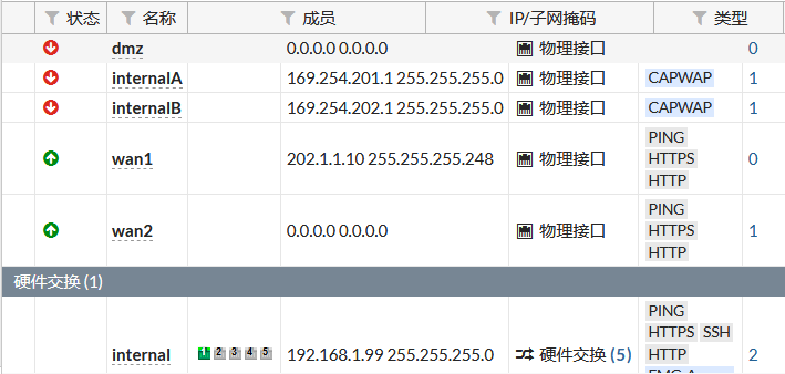 接口IP配置如下: