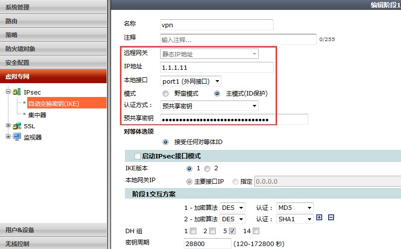 需要注意需要退出后再登录一下设备,这样创建的IPsec VPN才是基于策略模式的。